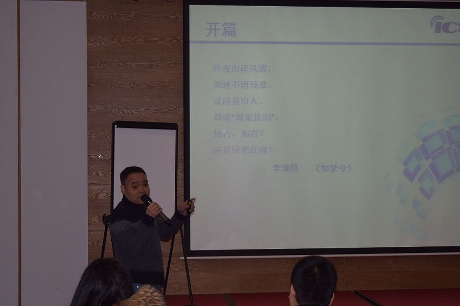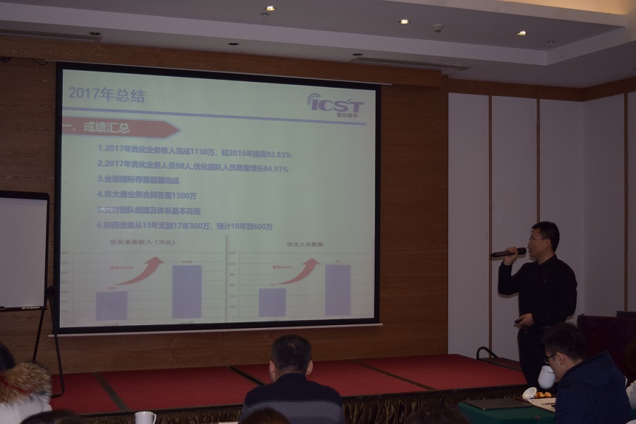 随后,技术服务事业部总经理,副总经理,经营管理部经理,财务部经理等12位管理层先后对各自部门2017年的工作完成情况进行了总结分享,并对2018年的工作目标计划进行了规划。特别值得一提的是总经理,总结分享以李清照的《如梦令》开篇,形象而生动的阐述了要做好销售工作,不可愚弄他人,惰性而为,应该脚踏实地,积极主动的担负起自己所应承担的责任。